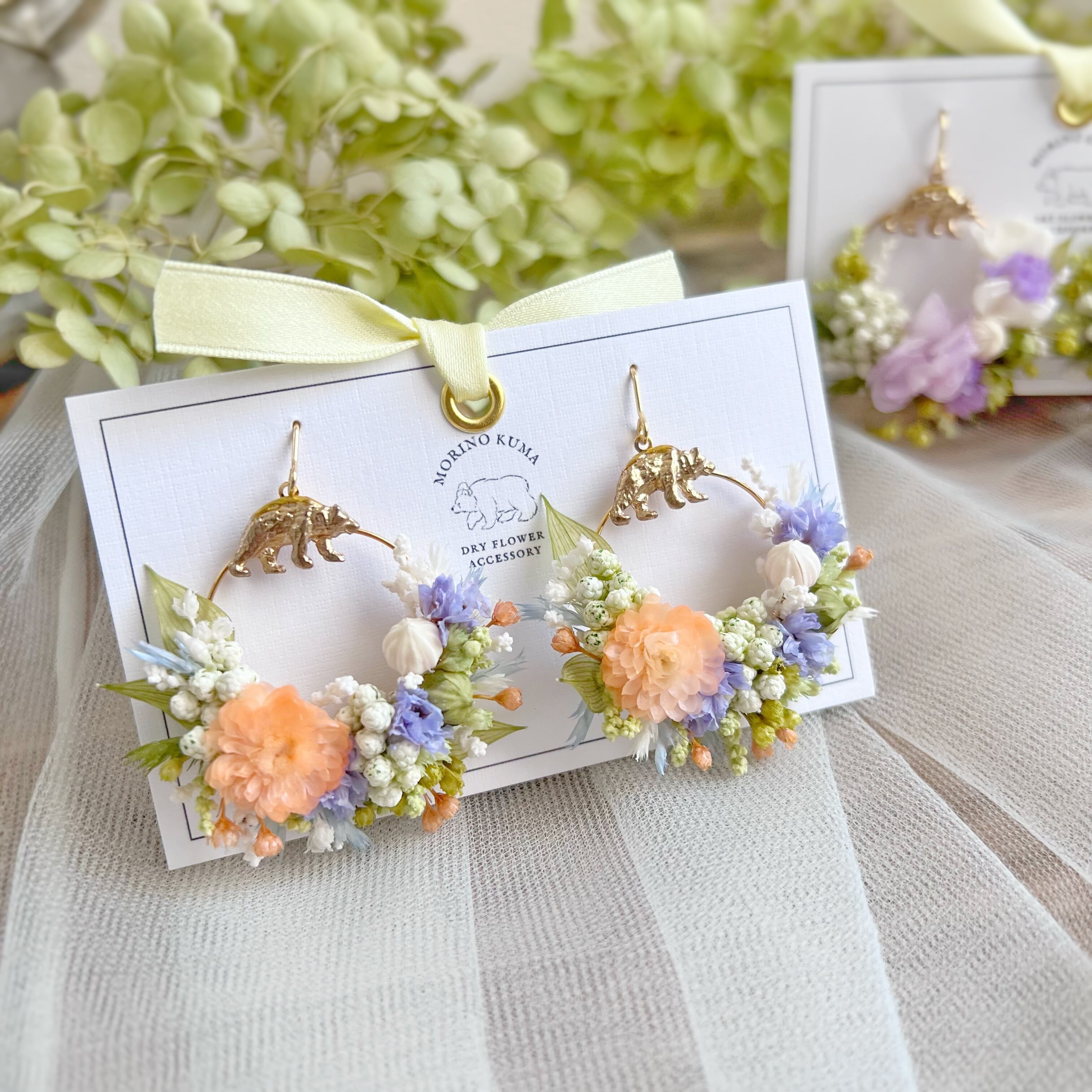 "四季"をテーマにした、小さなお花畑のようなリースタイプのピアス・イヤリングです。