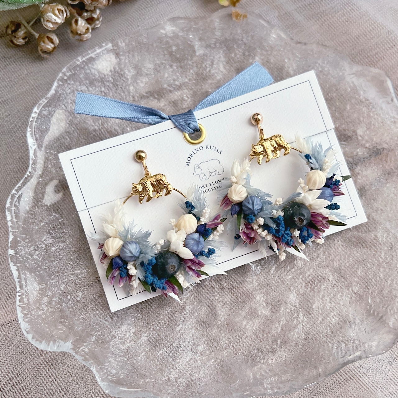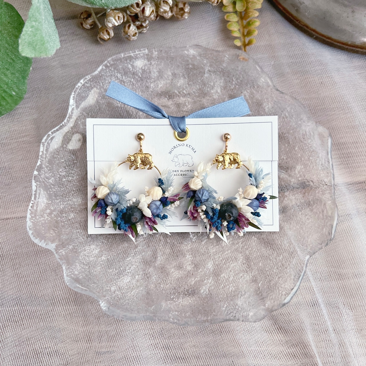 【冬色〜ブルーベリーアイス】お花畑リースピアス・イヤリング