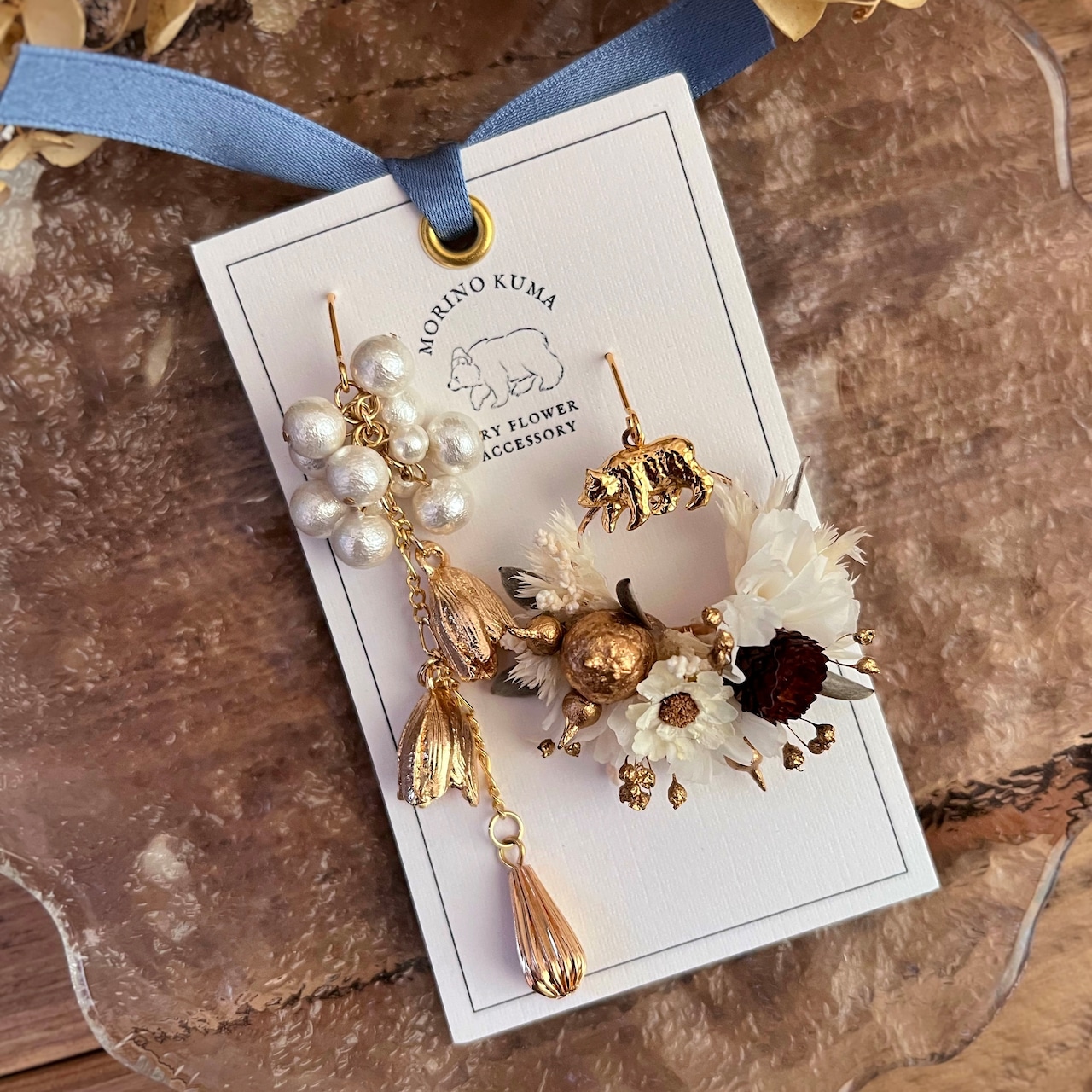 小さいながらお花をふんだんに使い、片方はゴールドのチャームでより普段使いしやすくなりました。